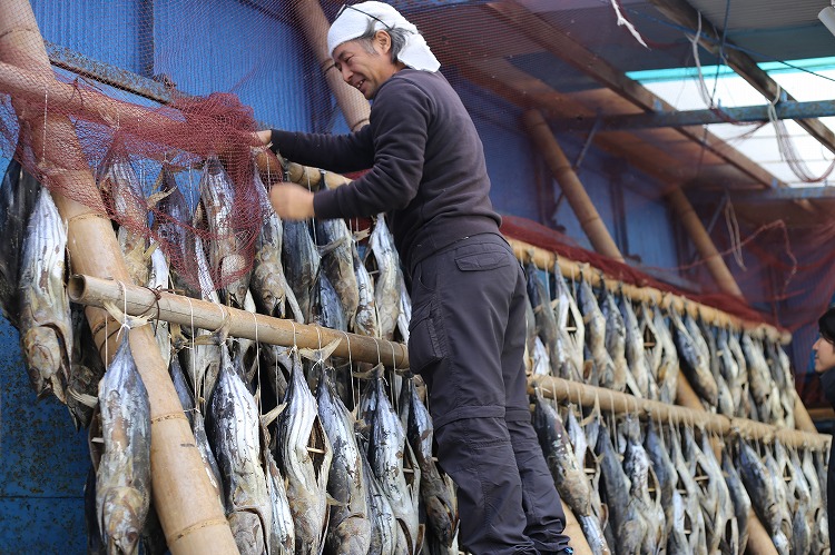 塩かつおは正月に向けて、西伊豆の冷たい海からの風を浴びて仕込まれています。
