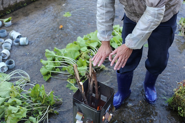 わさびは年間を通してとれますが、今の時期の収穫はほんと寒い。