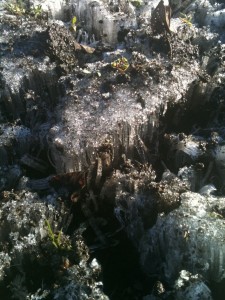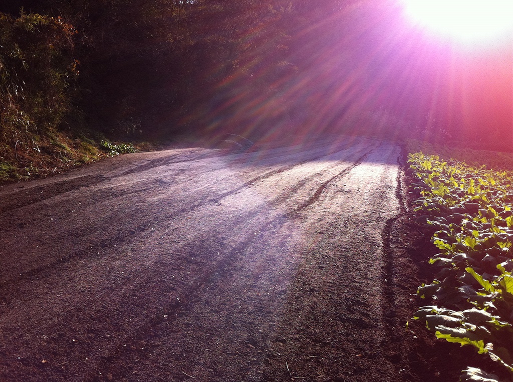 畑を照らし、霜を溶かす朝日が眩しかったです。