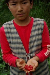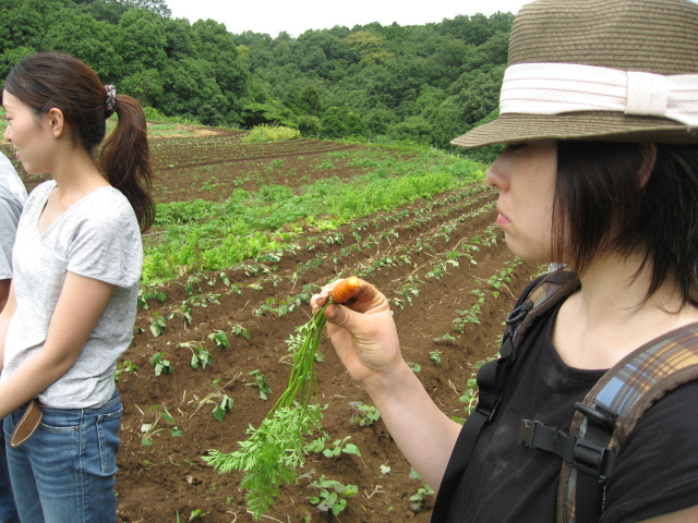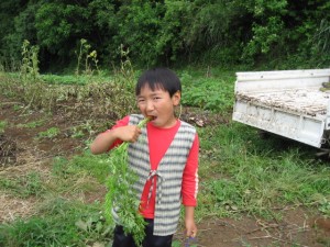 畑の様子を見ながら、畑のそこらになっている木の実などを農園のお子さんたちがお客さんへ