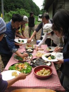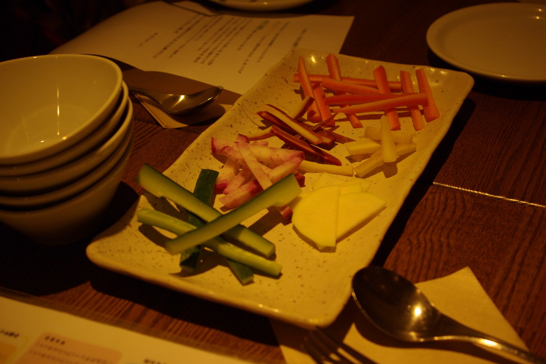そしてわさび農家、塩谷君も来てもらい、彼のつくったわさび漬けは野菜のデイップに。
